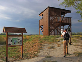 Észak: Vöcsök kutatóház, Monostori csárda, és kilátó
